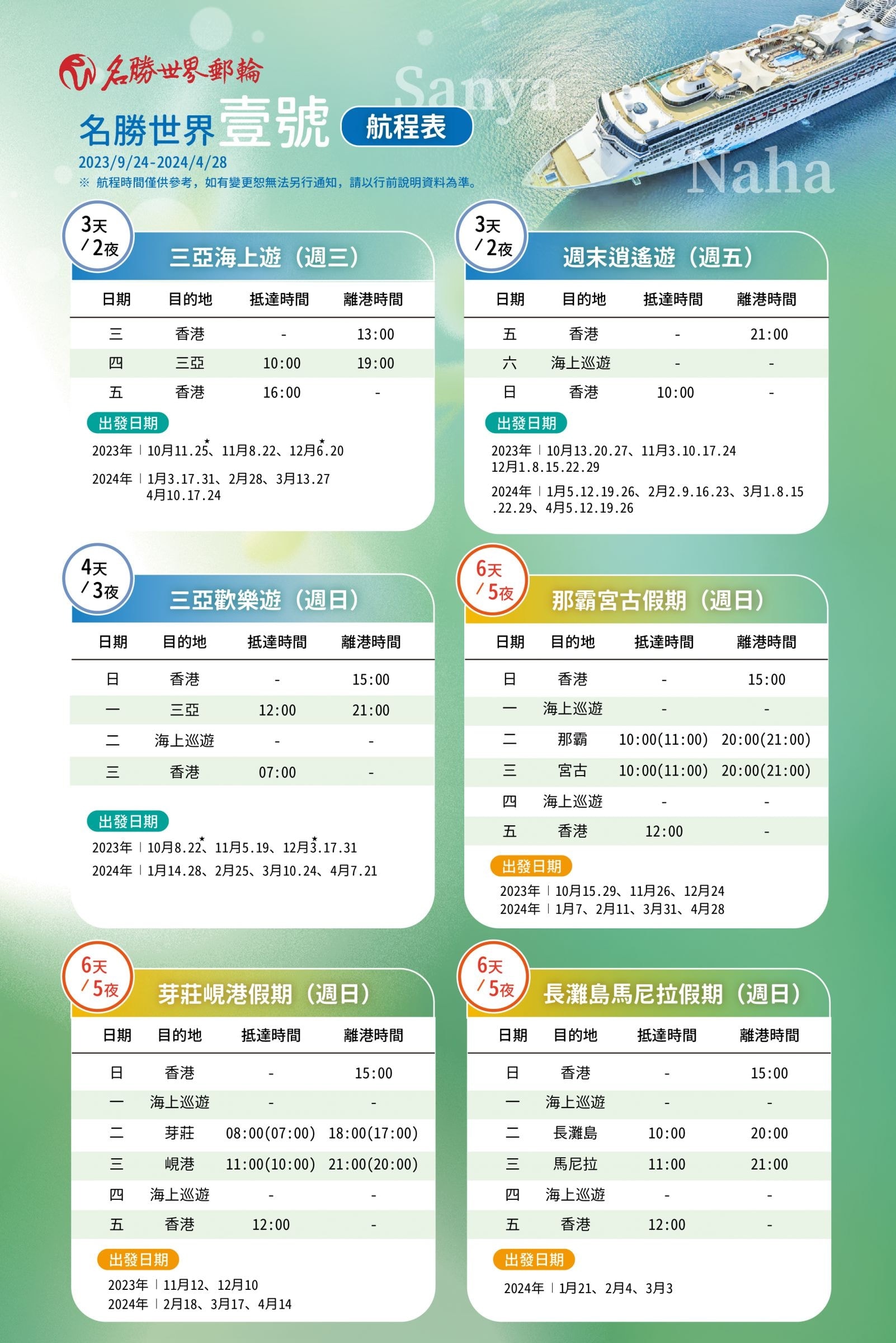名勝世界壹號郵輪提供獨一無二的旅遊體驗,讓您從香港展開一系列精彩行程。