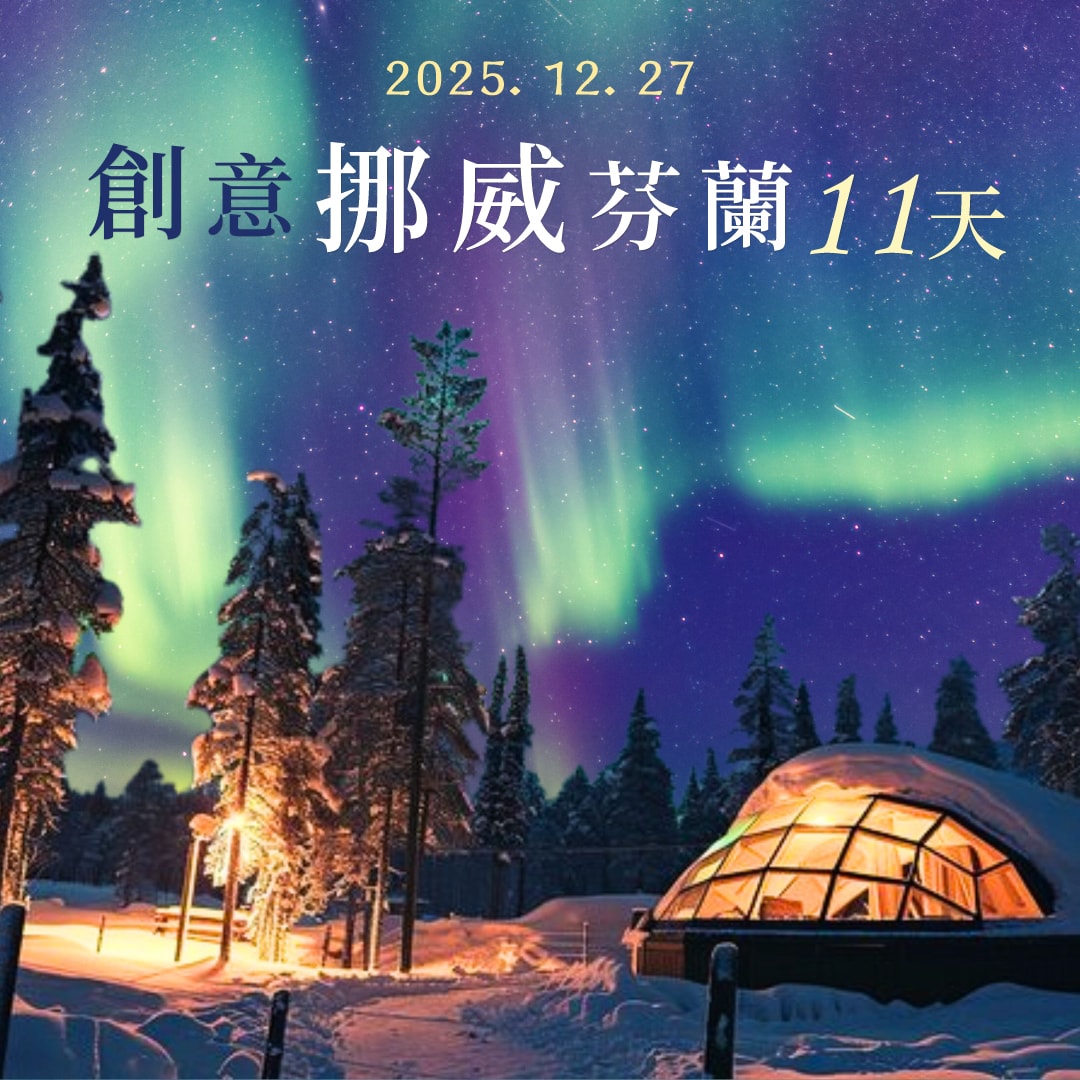 今年冬天首發極光團,帶您實現極光夢!我們將深入北極圈,在極光熱區連宿7晚,並特別安排入住3晚風格各異的豪華極光屋。行程更包含搭乘破冰船、探訪聖誕老人村等獨特體驗,是一趟將北歐冬季精華完整收藏的圓夢之旅。
