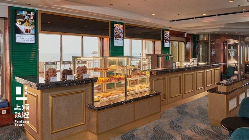 大堂咖啡:位於7樓,這是一個適合休閒聊天的地方,提供新鮮甜品、特色咖啡、美味小吃和雪糕等多種選擇,讓您一邊品嚐美食,一邊欣賞現場表演和娛樂節目。(需額外付費)