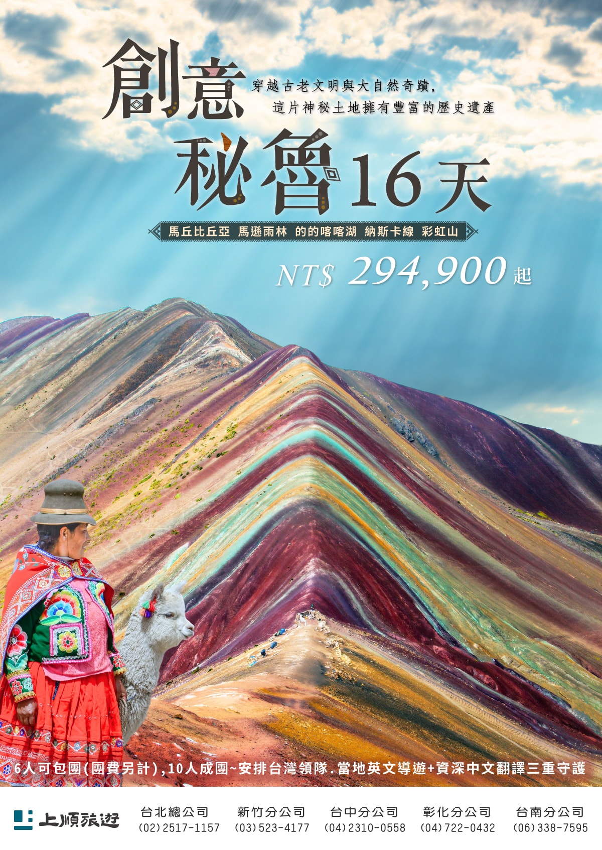 我們完全理解您對長途旅行舒適度的擔憂。上順的行程哲學是「重質不重量」。我們的「豐富」體現在體驗的深度,而非景點的數量。例如秘魯行程特別安排「三重守護」,由台灣領隊、當地英文導遊與中文翻譯全程照顧,並透過多點連泊的方式,追求景點間的從容轉場與身心平衡,確保您在旅程結束後,帶回的是滿滿能量,而非一身疲憊。