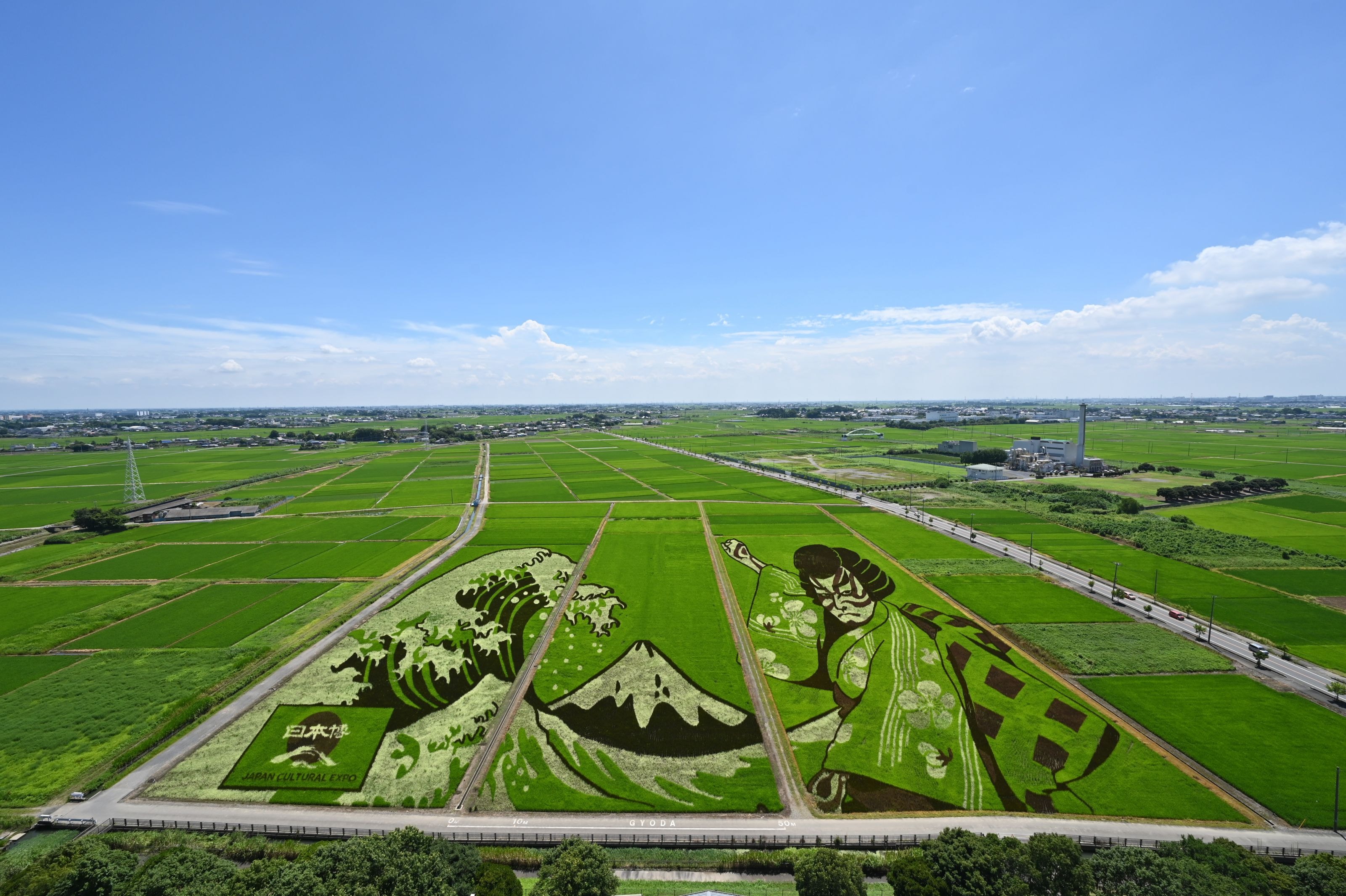 最後來介紹點不一樣的景點,埼玉縣行田市每年都會舉辦廣大的農田藝術展覽。是以不同品種的稻米交織而成的農田藝術,行田市的農田藝術更是受到金氏世界記錄認定的「最大農田藝術」,於「古代蓮之里」會館(https://www.ikiiki-zaidan.or.jp/kodaihasu/)中的50m高展望台可一覽無遺。