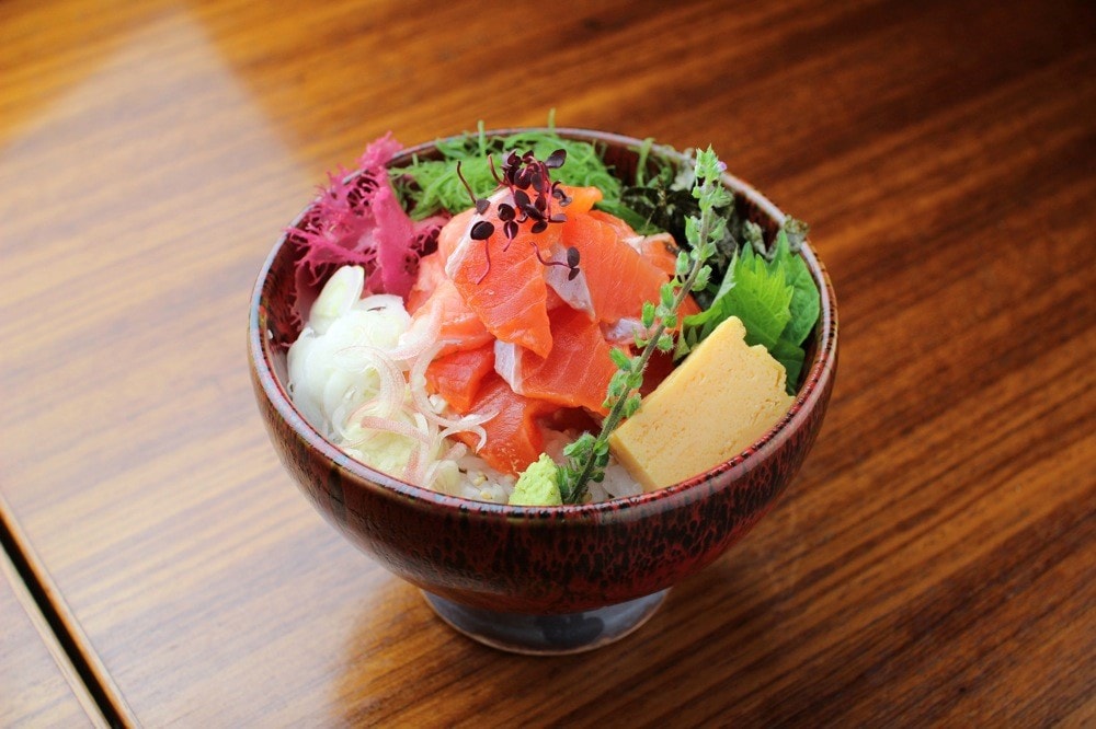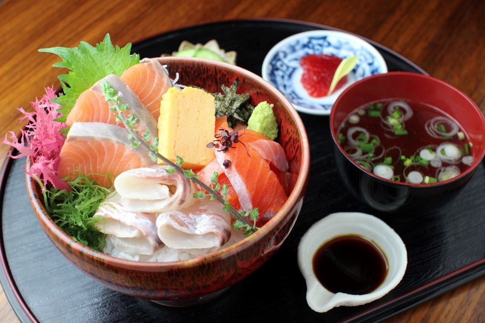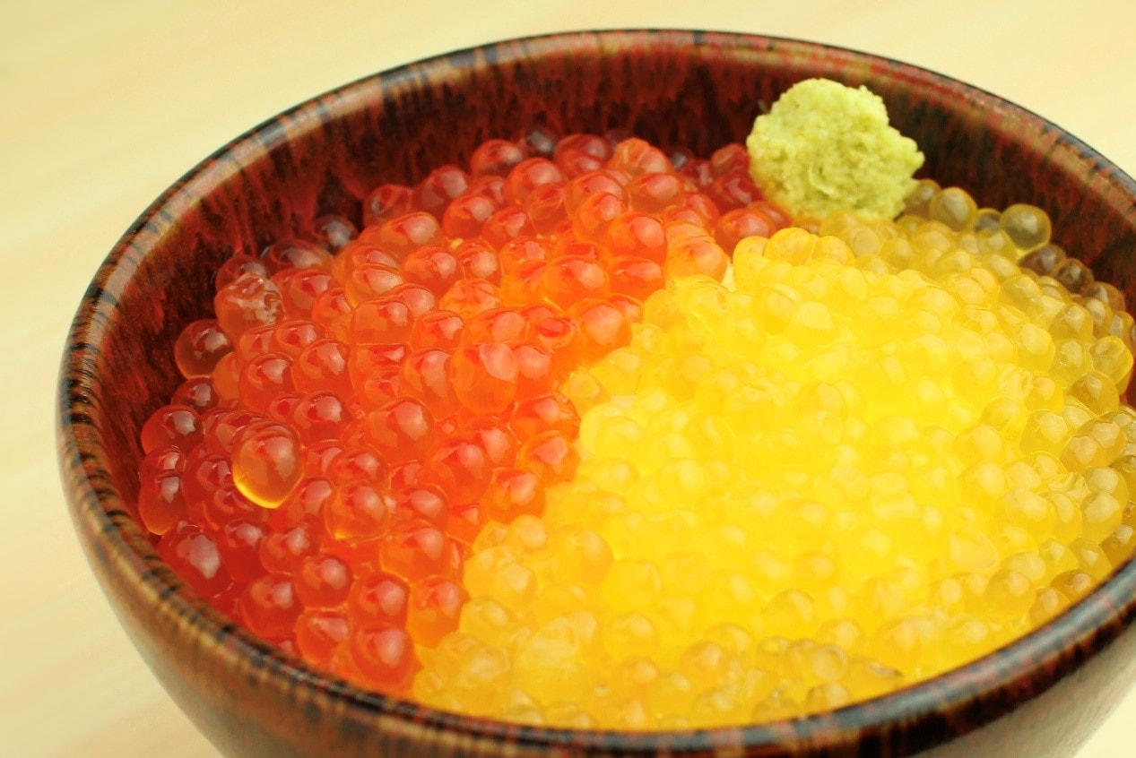 另外,由櫻鱒黃金魚卵搭配紅色鮭魚卵所組成的雙色丼,它可是每日數量限定的夢幻菜色,想吃還得靠運氣才行!而使用瓦斯噴槍微燒鮭魚表面的「炙燒鮭魚丼(炙りサーモン丼)」也是不容錯過的美味佳餚,鮭魚炙燒後所滿盈的焦香味與肉汁,使鮭魚的香氣與口感直接升等。