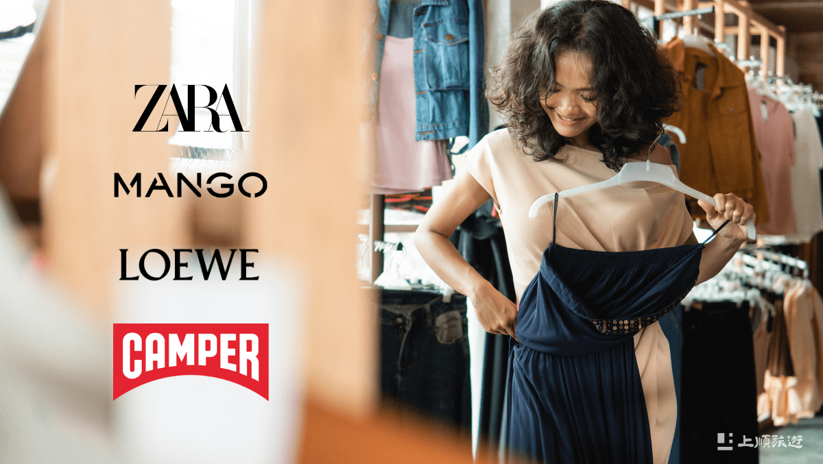 服飾品牌: Zara、Mango、Massimo Dutti、Pull\&Bear、Stradivarius、Bershka、Oysho 等,這些品牌提供時尚多樣的選擇,價格也較為實惠。