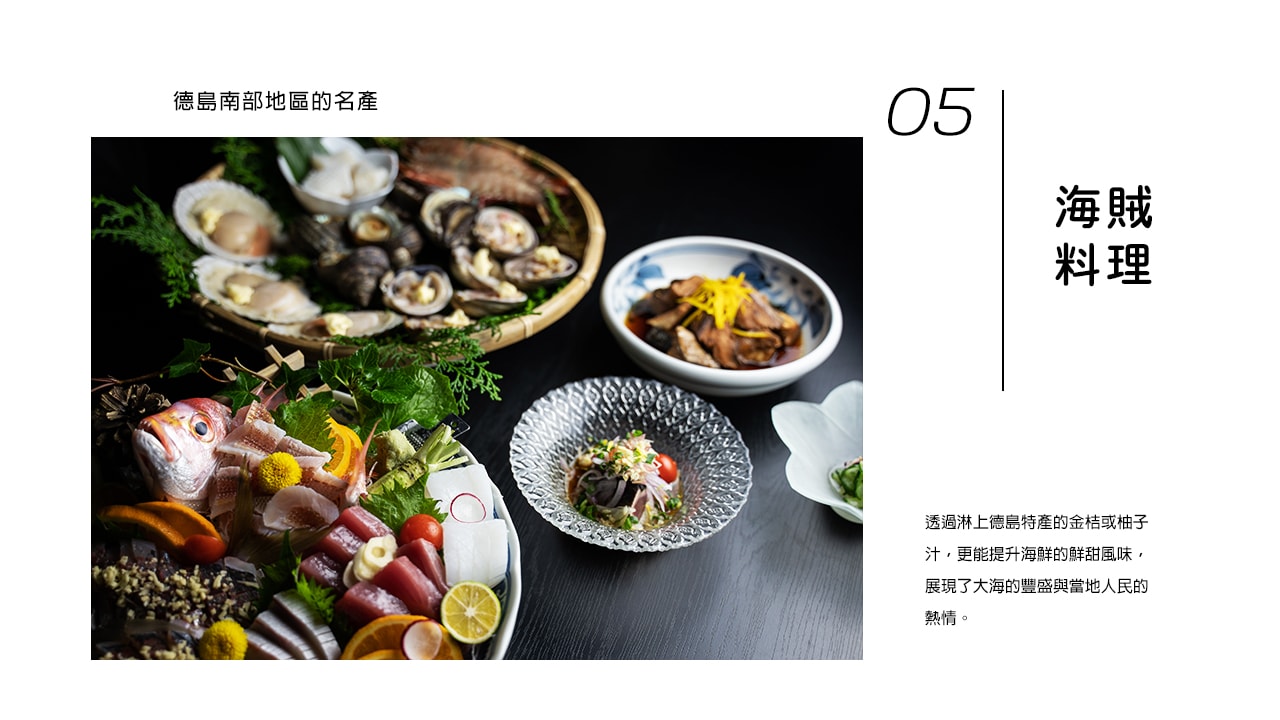 透過淋上德島特產的金桔或柚子汁,更能提升海鮮的鮮甜風味,展現了大海的豐盛與當地人民的熱情。