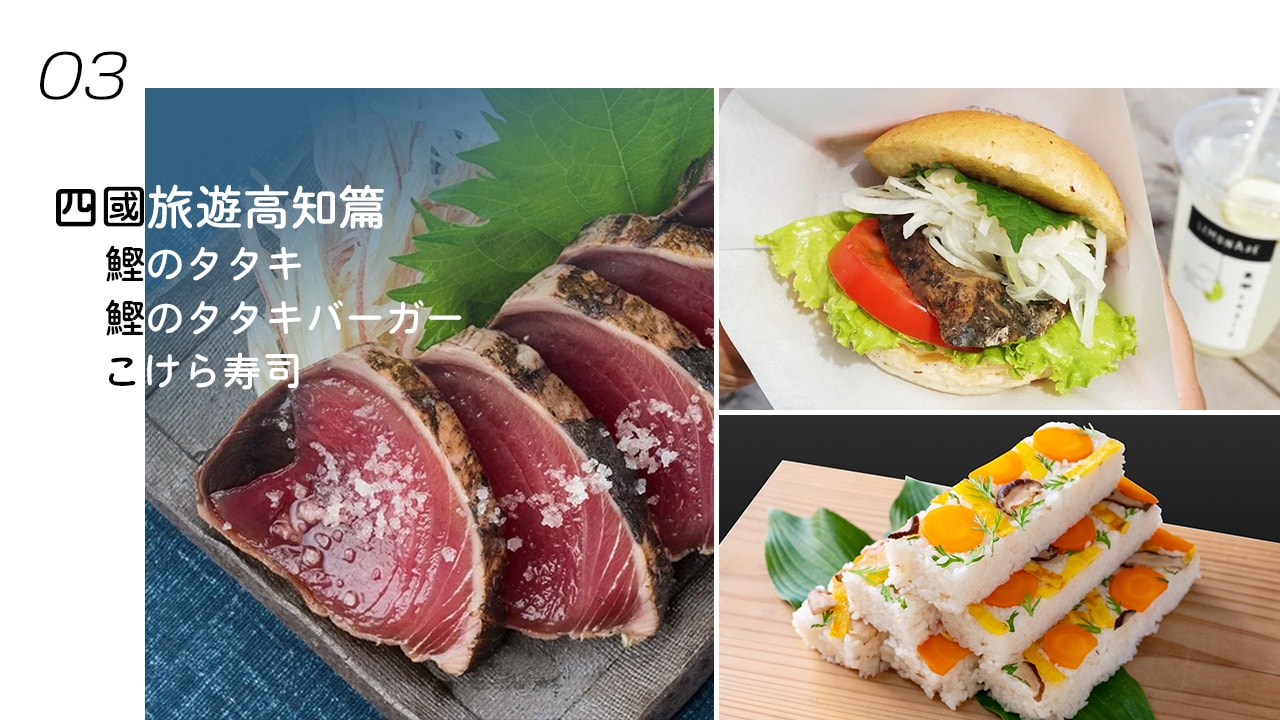 不僅視覺上令人賞心悅目,口感也豐富多樣,是高知的特色鄉土料理。