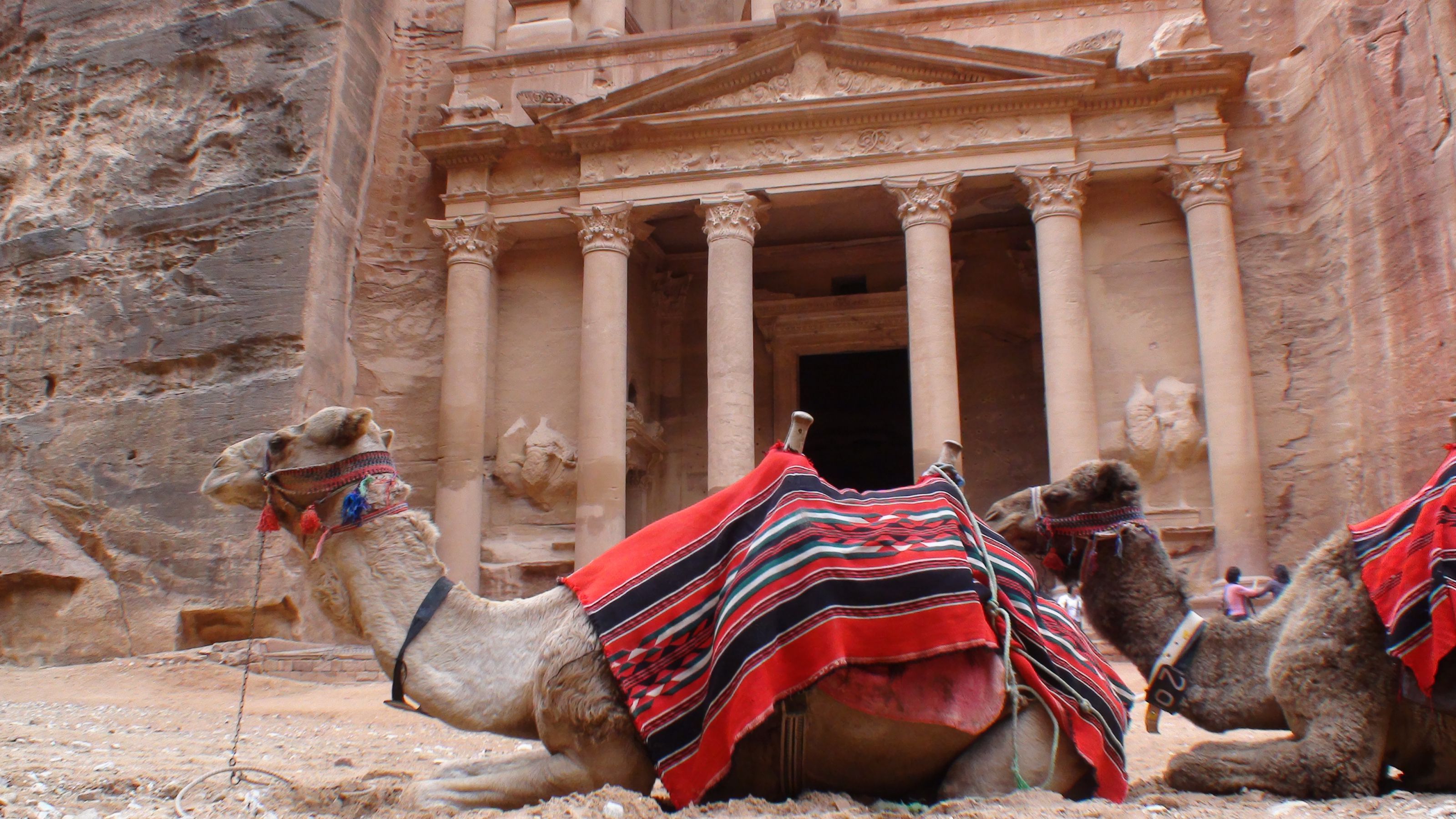 佩特拉是在赤褐色砂岩的多彩色山谷中,人工雕鑿的古城,據信是納巴特王國的首都,隱藏在約旦首都安曼南方250公里的一條狹窄的峽谷內。