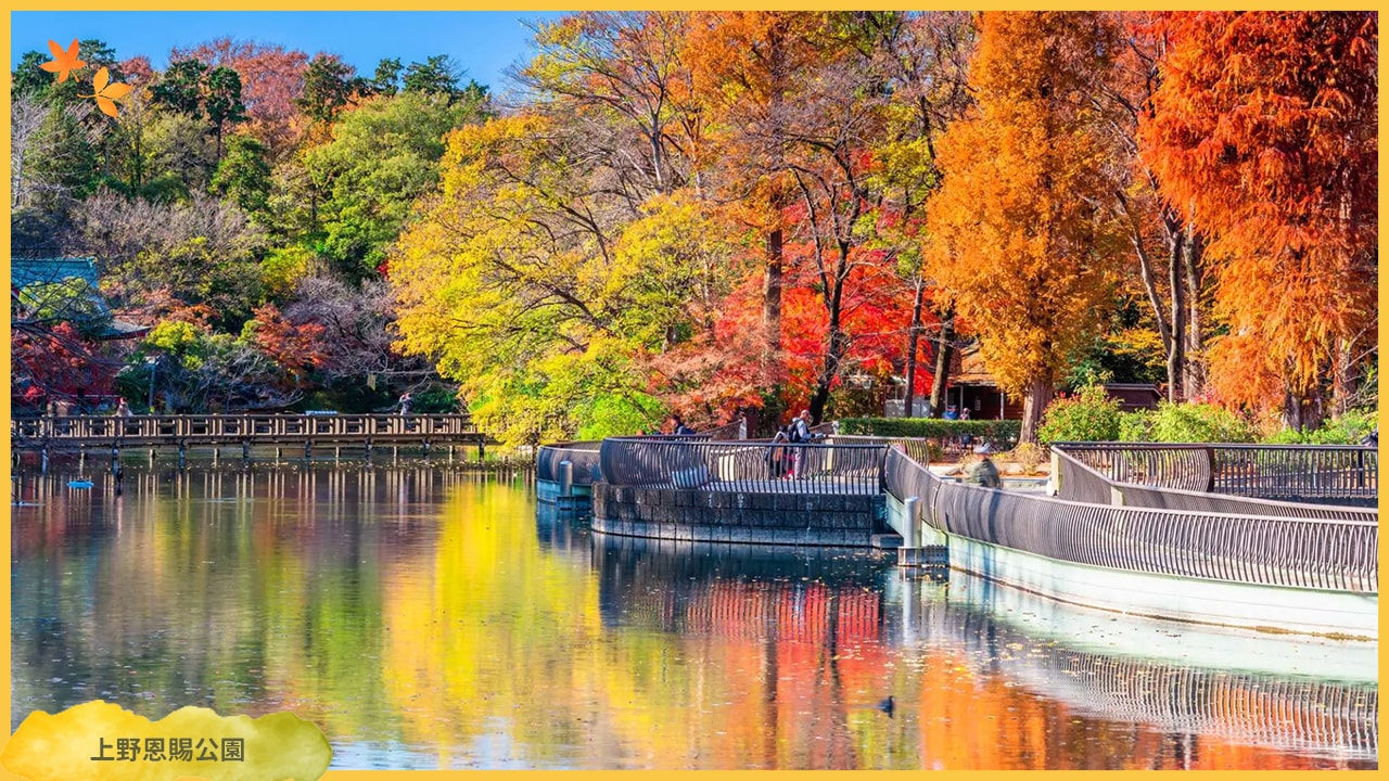 位於東京市中心,交通極為便利。除了賞櫻,秋季的楓葉也相當迷人,園內的「不忍池」可乘船欣賞湖畔風光,周邊還有博物館和動物園,適合一日遊。最佳賞楓期約在11月下旬至12月上旬。搭乘JR或東京Metro至上野站即可抵達。