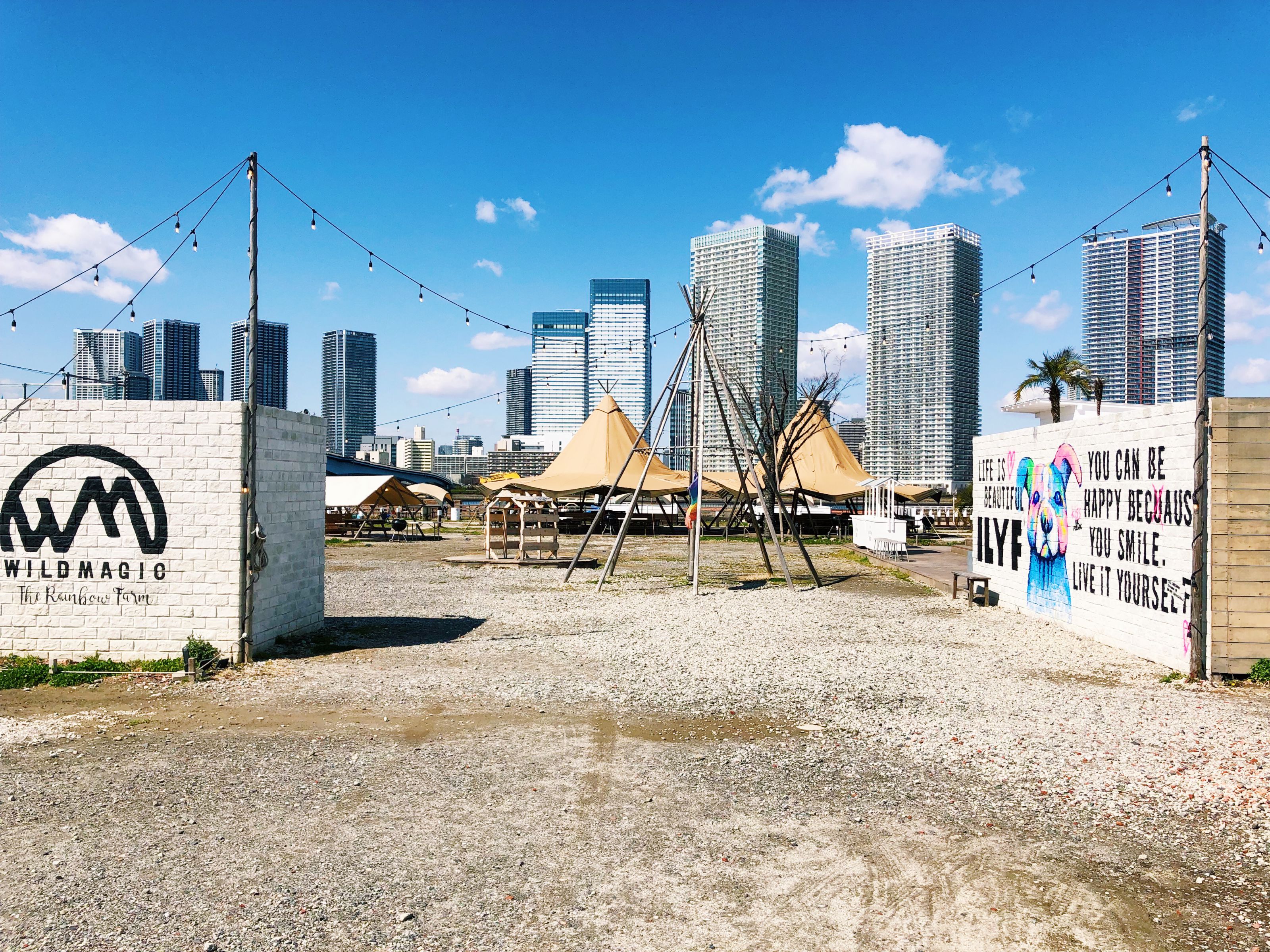 位於豐洲東京灣旁的「WILDMAGIC The Rainbow Farm」,由於交通便捷的地利優勢,成為了東京都會地帶體驗奢華露營的首選場地。