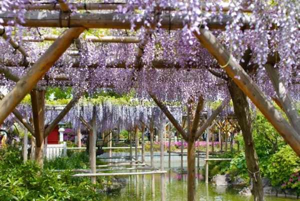 這裡展示了20種不同品種的紫藤花,絕對是一場視覺盛宴。此外,這座公園的紫藤樹還被指定為國家特別天然紀念保存木。