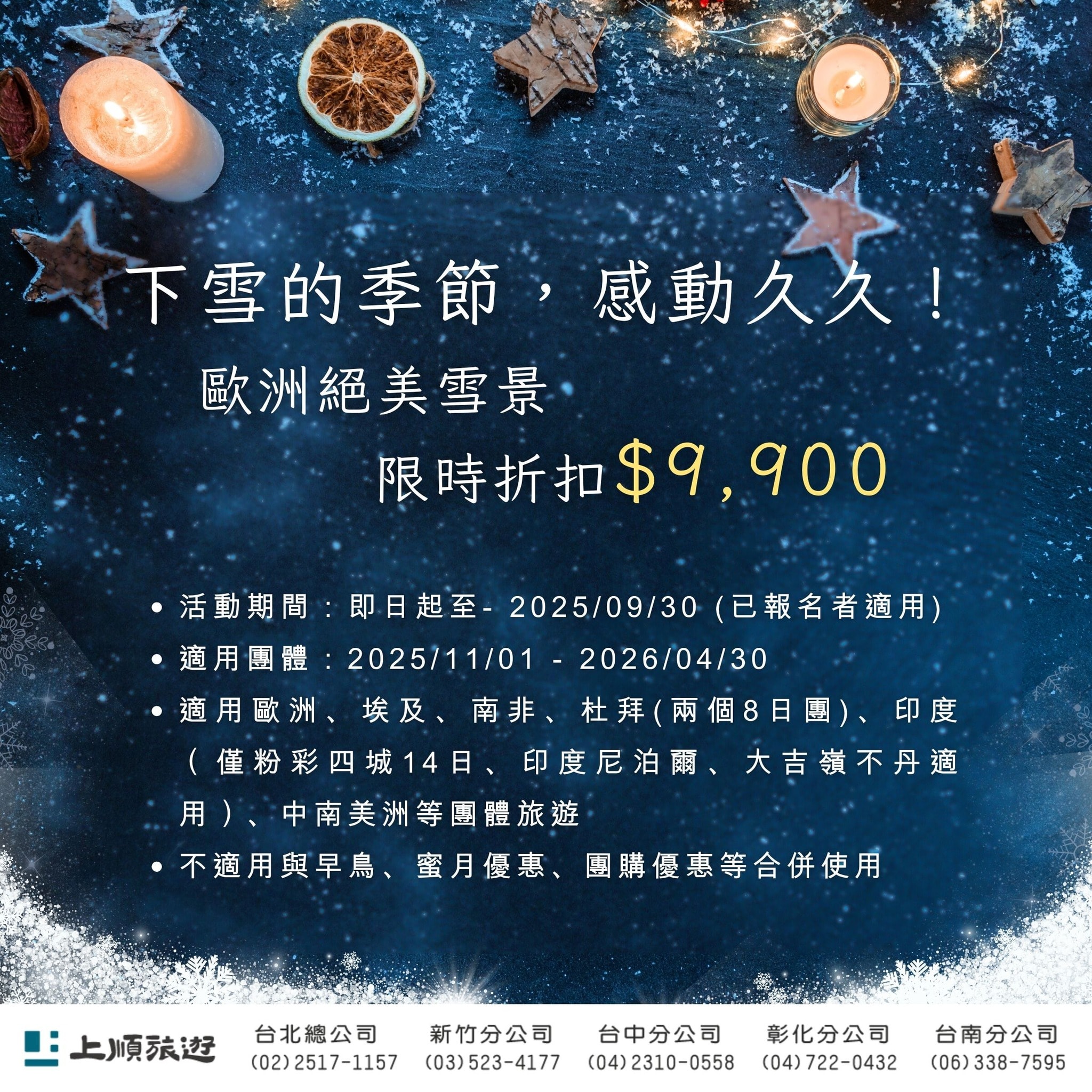 【終極倒數】現省$9,900!冬日歐洲早鳥優惠9/30截止,錯過再等一年!