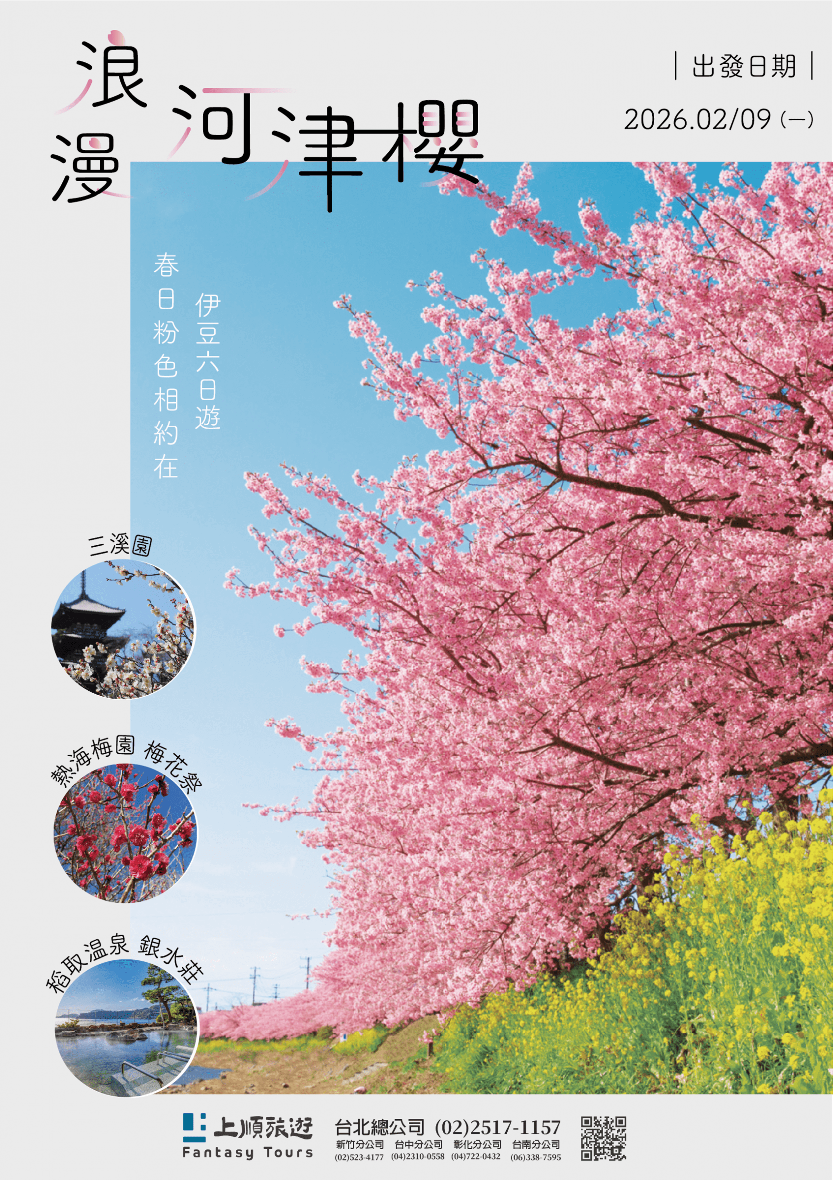 📅 出發日期:2026/02/09 (春節後首發) 👉 點此查看【河津櫻伊豆6日】詳細內容