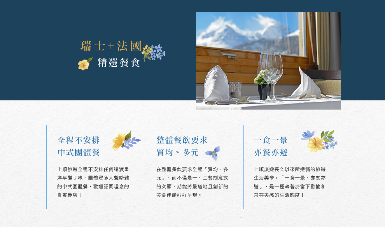 2026/04/14(二) | 桃園國際機場出發 創意瑞士法國~洛書堡穿山火車菲斯特纜車冰河列車勃艮地酒鄉楓丹白露宮三大名峰13天機位 29 候補0 已售0 可售28★冰河列車一等艙★長榮航空BR米蘭進巴黎出.策馬特2晚豪華團 |