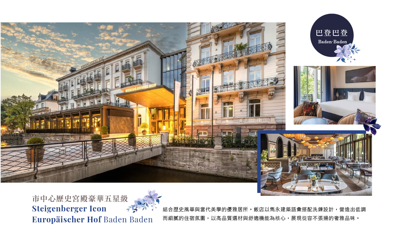 (2)巴登巴登住宿如遇訂滿,將以鄰近私房葡萄田園度假旅館或法國阿爾薩斯風景優美的史特拉斯堡住宿為替代。