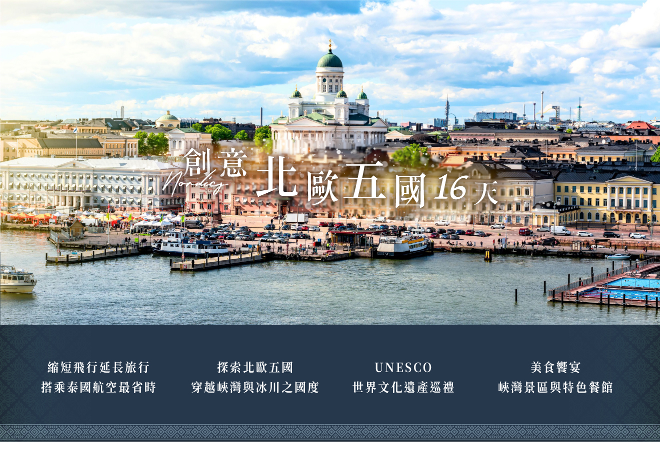 2026/05/23(六) | 桃園國際機場出發 創意北歐丹麥挪威冰島芬蘭瑞典五國~孟克吶喊水彩峽灣縮影火車北大西洋大道藍湖溫泉朗格冰川16天機位 29 候補0 已售0 可售28泰國航空TG豪華團 |