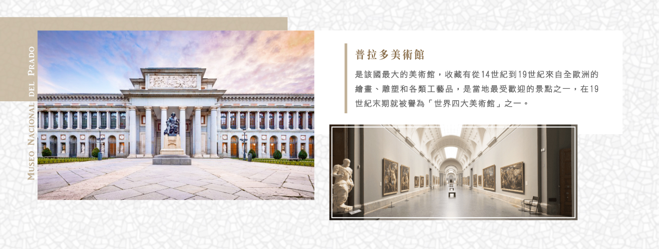 ■馬德里參觀與法國羅浮宮、大英博物館齊名、收藏繪畫數量頗多也是古典藝術品齊聚的★普拉多美術館,窺探西班牙在12~18世紀間的藝術傑出表現,如埃爾葛雷柯、委拉斯奎茲、哥雅及部分塞維亞畫派大師作品。