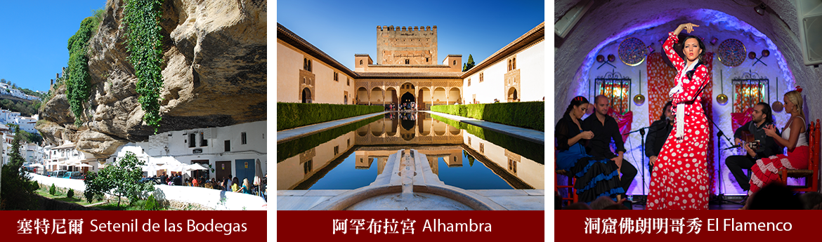 ■格拉納達,北非摩爾人在西班牙最後一個據點,也是當年回教納斯爾王朝的首都,因《阿罕布拉的回憶》一曲聞名,四周被內華達山脈所圍繞,自然環境優美,市區內處處還散發出古都特有的氣氛,不僅歷史遺跡多可以說是西班牙異族歷史變遷的舞台、頗具異國風味的小酒館、咖啡館及手工藝品,更是令人樂於造訪,由當地具執照專業導遊帶領下展開回教建築經典★阿罕布拉宮、查理五世宮殿之旅,始建於12世紀,至14世紀時擴建成今天的規模,入內參觀阿拉伯內宮建築妃妾寢宮、獅子廳水泉、大澡堂…★仙內拉麗妃花園及夏宮迴廊等。