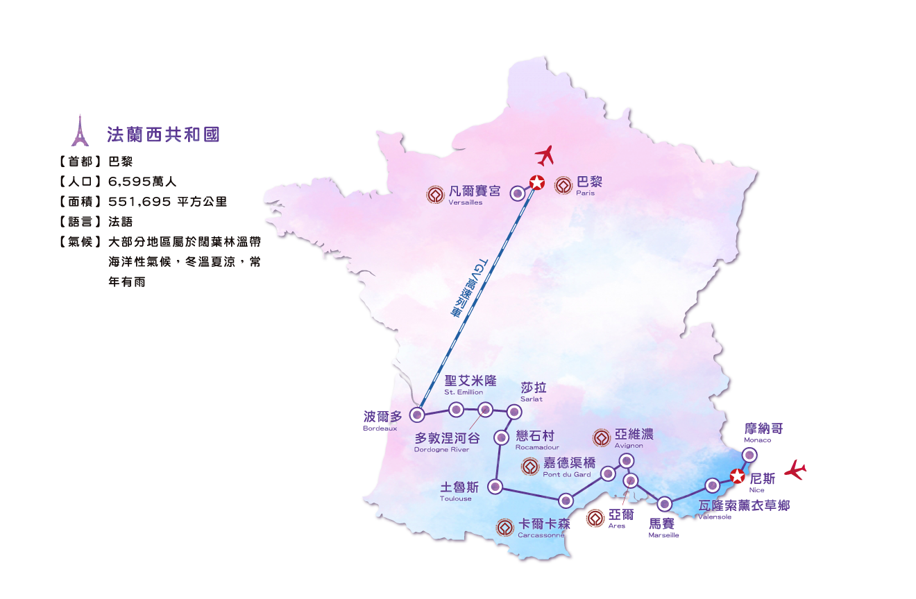 創意法國蔚藍海岸普羅旺斯戀石村莎拉小鎮多敦涅河谷波爾多酒鄉巴黎夜色12天