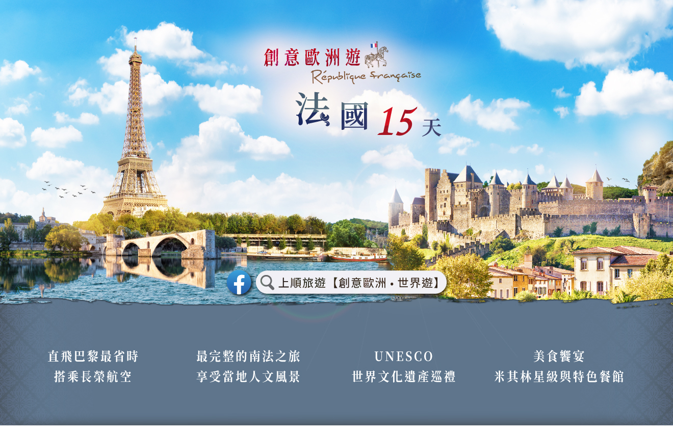 2026/07/05(日) | 桃園國際機場出發 創意法國~蔚藍海岸普羅旺斯莎拉小鎮波爾多聖米雪山古堡酒鄉巴黎夜色15天機位 29 候補0 已售9 可售19💜長榮航空BR直飛、巴黎3晚、南法薰衣草季豪華團 |