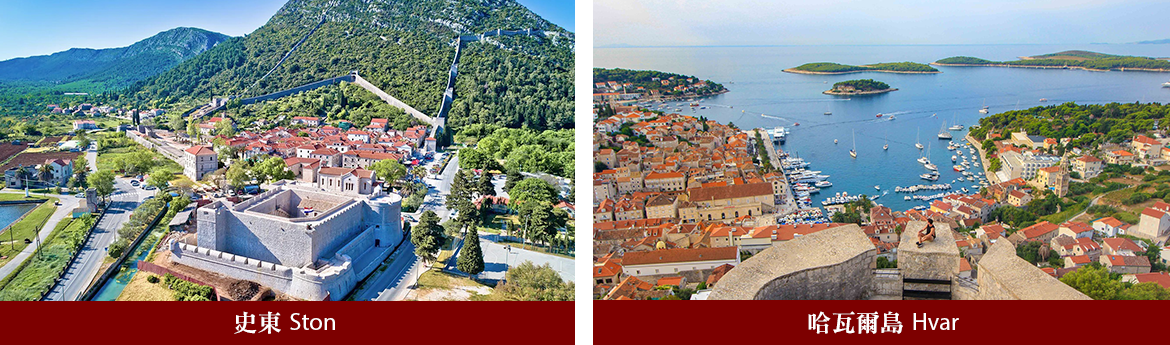 ■史東,以盤據山丘壯麗城牆聞名,總長達5.5公里,建於14世紀至15世紀間,旨在保護當地古羅馬時代和其附近的鹽田,現今亦為克羅埃西亞重要的高品質鹽產區,特別品嘗當地美味的藍寶石牡蠣佐白酒,是絕對不容錯過的美味!