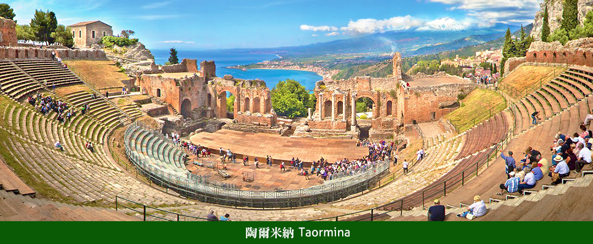 ■陶爾米納,是個美麗山城,也是孕育詩人和畫家的地方,大導演盧貝松的電影《碧海藍天》主要外景地就在這裏;世上再也沒有一座小鎮像這裏把古希臘劇場、大海、火山、沙灘、島嶼、教堂、巴洛克建築、懸崖山城……完美結合在一起,美的讓人永生難忘,法國短篇小說之王莫泊桑曾說過「如果只能在西西里一天,他會毫不猶豫地回答是陶爾米納」