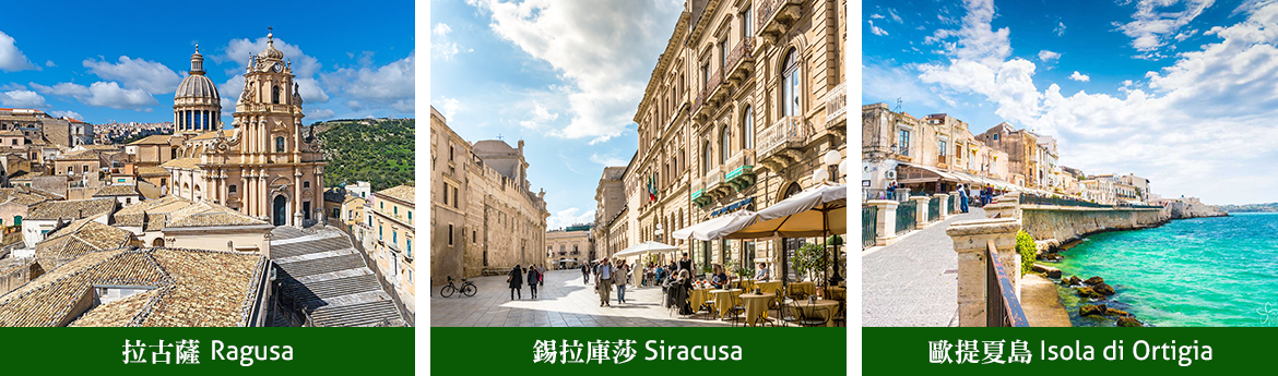 ■拉古薩,城區建在海拔520公尺兩個深谷之間寬闊的石灰岩山丘上,1693年毀於大地震,之後重建為巴洛克城市。2002年,它和諾托谷地的另外7個小城鎮,一同被列為世界遺產,也是西西里偵探劇Il Commissario Montalbano(蒙塔爾巴諾探長)的主要拍攝地點之一,現在拉古薩有兩個部分:古老的伊布拉和較現代化的上城區,特別漫步於伊布拉區,擁有風景如畫的小巷、咖啡館、餐館,這個迷人的小鎮最適合悠閒探索,角落間常有意外驚喜,也可以走到Giardino Ibleo公園,內有修剪整齊、綠樹成蔭的花園及享有周圍山谷的美景;特別安排在大教堂廣場上招待西西里島最著名的La Granita雪泥冰以及私房秘寶備受當地人喜愛的葡萄酒冰淇淋或是季節新鮮水果的冰淇淋〫