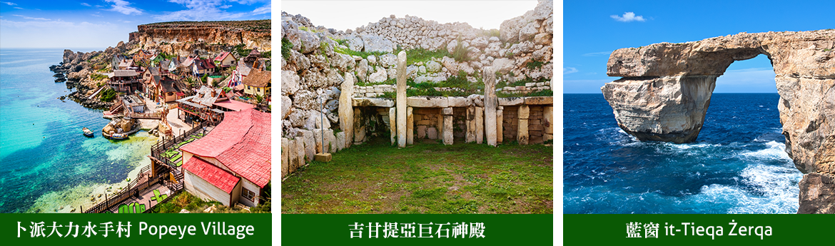 ★卜派大力水手村,許多人童年看過相當知名的卡通影片「大力水手」,令人印象最深刻的片段情節,就是每當大力水手卜派遇上危機需要能量時,就會吃上菠菜罐頭,隨後就有神奇力量去解決困境;1980年大力水手的真人版電影開拍之際,製作組成員在地中海上美麗的馬爾他島,在一個美麗的海岬懸崖邊,花了近七個月時間打造一個和卡通影片中一模一樣的場景,在這裡可以真實體驗卜派與他的情人奧莉薇和情敵布魯托的生活,可以到小電影院欣賞影片,村內一棟棟如童話般的彩色房舍,不僅有消防局、理髮店、麵包房、郵局、水手酒吧等,在樂園裡漫步,總能看到卜派大搖大擺的從身邊走過,嘴裡還叼著那個不會冒煙的煙斗,令每個造訪的遊客會有種回到卡通世界的感覺。