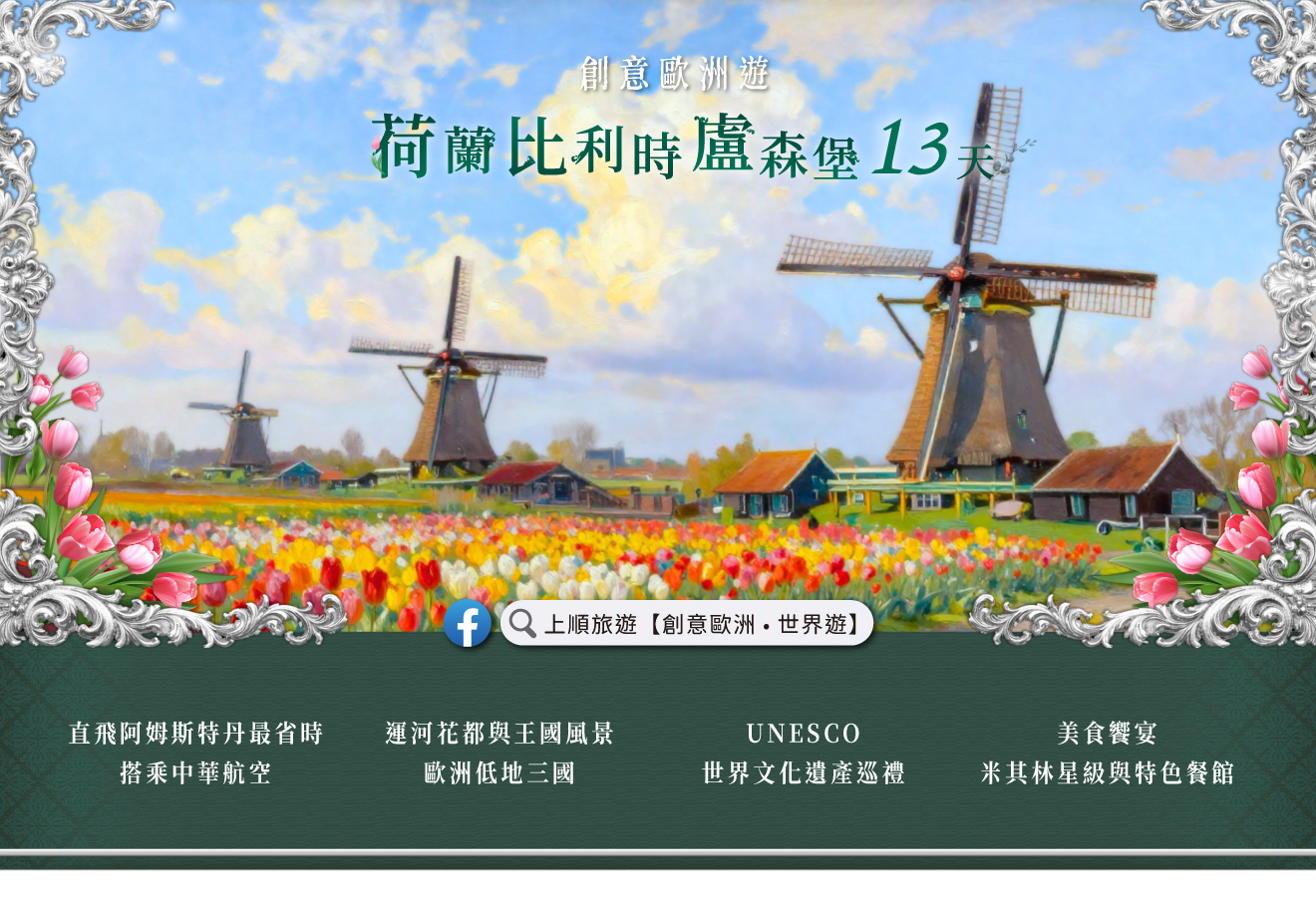 2026/12/08(二) | 桃園國際機場出發 創意荷蘭比利時盧森堡~莫澤河特麗爾珍珠耳環女孩滑鐵盧古戰場羊角村北海大堤梵谷國家公園13天機位 29 候補0 已售0 可售28中華航空CI南進北出.單一路線豪華團 |