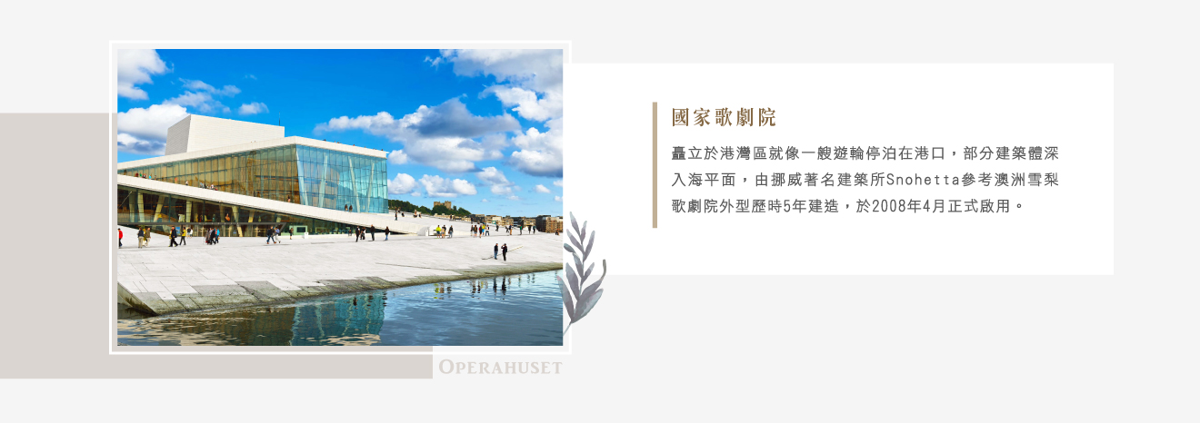 ■濱海歌劇院,矗立於港灣區就像一艘遊輪停泊在港口,部分建築體深入海平面,由挪威著名建築所 Snohetta參考澳洲雪梨歌劇院外型歷時5年建造,於2008年4月正式啟用,占地約3 萬9千平方公尺,內有歌劇廳、芭蕾舞廳和音樂廳,擁有世界最昂貴的音響系統。