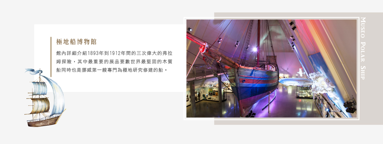 ★弗拉姆極地船博物館,位於奧斯陸比格半島上,此半島又被稱作博物館半島,館內詳細介紹1893年到1912年間的三次偉大的弗拉姆探險,其中最重要的展品要數世界最堅固的木質船同時也是挪威第一艘專門為極地研究修建的船,參觀者可以登船參觀內部的船艙和機械室。臨時展覽著重介紹持續升溫的兩極問題,各次探險所帶回的物品,以及世界最大的關於極地主題圖書館,有超過220種書籍。