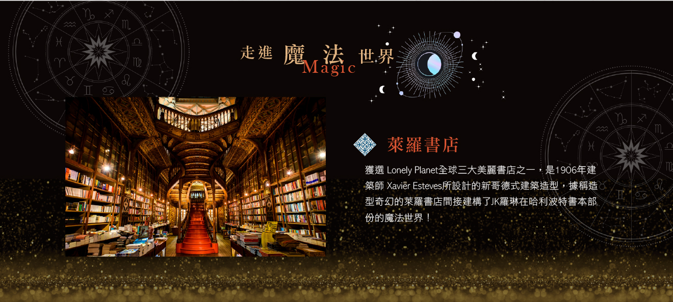 ★萊羅書店,葡萄牙境內最知名的書店,獲選《Lonely Planet》全球三大美麗書店之一,是1906年建築師 Xavier Esteves所設計的新哥德式建築造型,兩層樓的空間由一座造型奇特的紅色旋轉樓梯銜接,牆面整片的木製書牆讓整間書店充滿著特殊魔法氛圍,2樓的彩繪玻璃牆上刻著書店座右銘decus in labore (英文為there is honor in work),據稱造型奇幻的萊羅書店間接建構了JK羅琳在哈利波特書本部份的魔法世界呢!