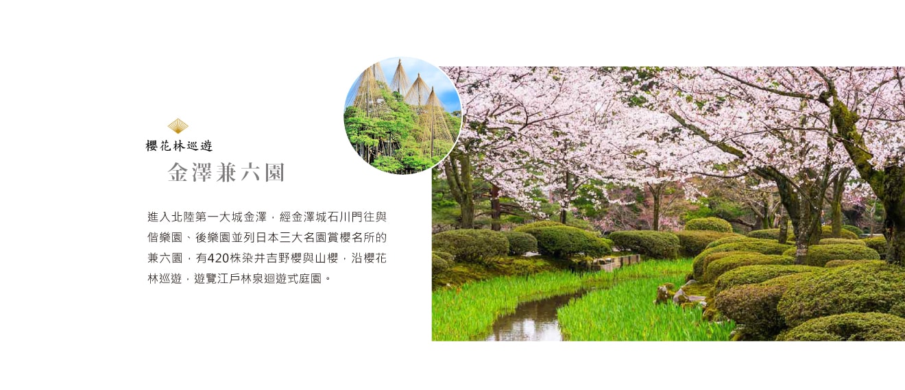 ●『(賞櫻百選)兼六園(石燈籠.飛瀑.池泉)名園巡遊』櫻花期🌸:約3月下旬~4月上旬