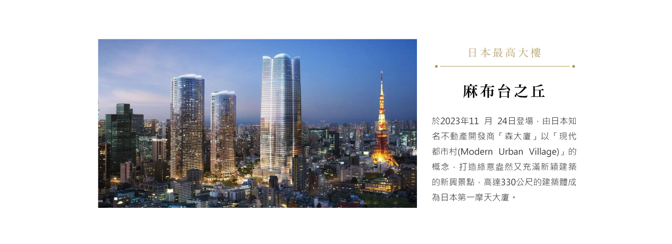 位於東京都港區的「麻布台之丘」Azabudai Hills,主棟「森JP塔」高達330公尺,是當今日本最高的摩天大樓。以「現代都市」的概念打造出綠化空間,除了彙集世界頂級名品、星級料理名店、國際奢華酒店、娛樂設施之外,廣場中裝置著多位藝術家的作品,讓整個廣場除了綠意之外,也增添濃厚的藝術氣息。
