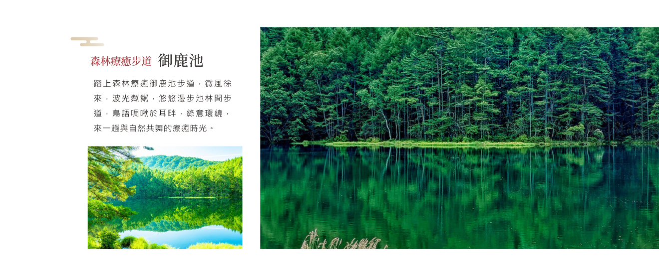 踏上森林療癒御鹿池步道,微風徐來,波光粼粼,悠悠漫步池林間步道,鳥語啁啾於耳畔,綠意環繞,來一趟與自然共舞的療癒時光。