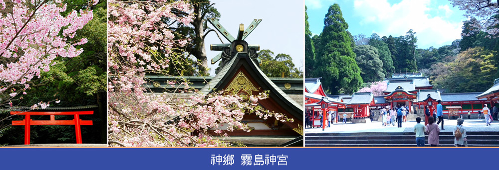 位於鹿兒島縣霧島市充滿神話色彩天孫降臨神話的霧島神宮,祭祀著日本傳說中的日本開國之神《瓊瓊杵尊》,曾因火山噴發和受祝融之災一度被燒毀,之後歷經重建修復而有今日的面貌。朱紅色的外牆和細膩精緻的彩色浮雕,配上四周翠綠的樹林,享有「西之日光」的美譽。神宮境內的神木杉樹,樹齡高達800年,是鹿兒島縣具代表性的著名能量景點。