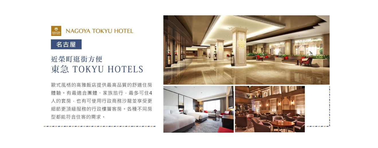 住宿:名古屋 萬豪HOTEL 或 名古屋 東急HOTEL 或 同級