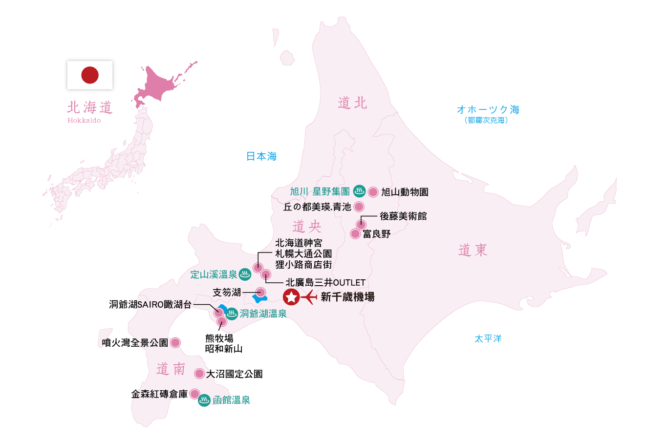 支笏湖/昭和新山.熊牧場/(搭纜車)賞函館夜景/金森倉庫/大沼公園遊覽船/洞爺湖瞰湖台/(美瑛)搭農耕車賞四季彩之丘.青池/富良野彩虹花田/旭山動物園/北海道神宮