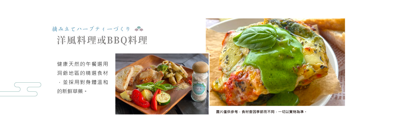 早餐:飯店內 午餐:洋風料理或BBQ料理 晚餐:百匯料理或洋風料理