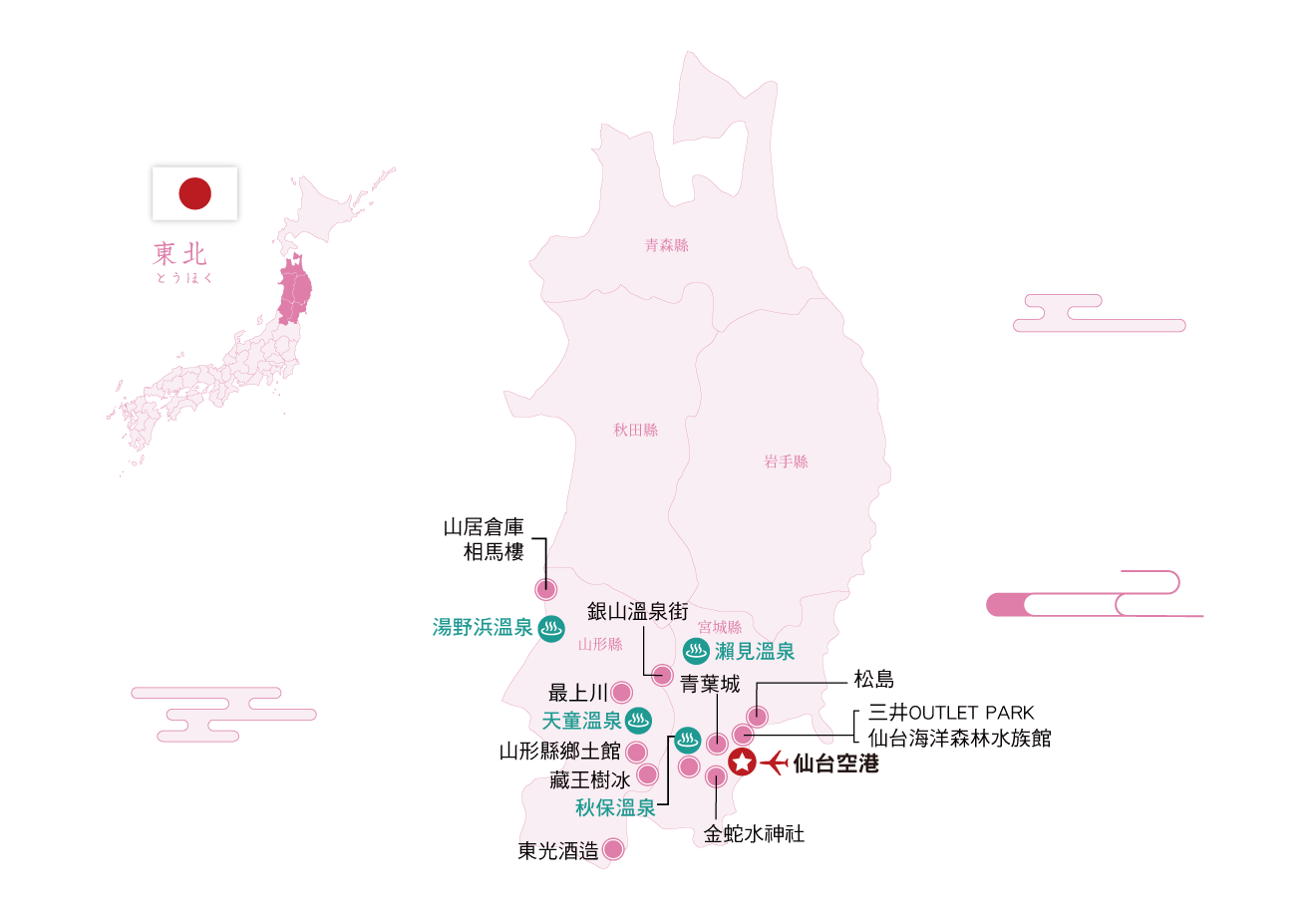 (依航班)在桃園國際機場集合,辦理出境手續後,搭噴射客機直飛日本東北仙台,抵後展開日本溫泉美食度假之旅。
