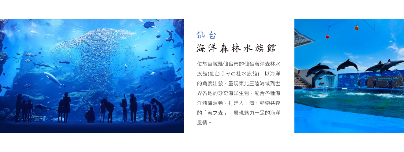 位於宮城縣仙台市的仙台海洋森林水族館(仙台うみの杜水族館),以海洋的角度出發,重現東北三陸海域到世界各地的珍奇海洋生物,配合各種海洋體驗活動,打造人、海、動物共存的「海之森」,展現魅力十足的海洋風情。