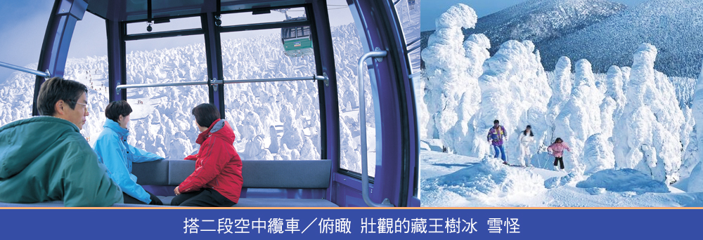 註1:如遇纜車故障、維修、或其他天候因素無法搭乘時,改搭藏王中央纜車,賞冬季限定的霧冰雪白美景或改去乘坐雪怪車WILD MONSTER,欣賞各具特色的樹冰雪怪。