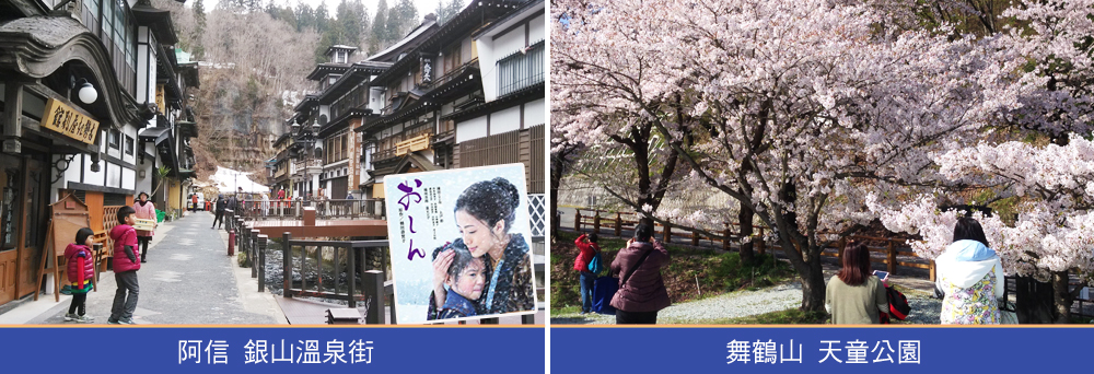 秋之宮溫泉鄉─(阿信)銀山溫泉街散策─(舞鶴山)天童公園(櫻花)─出羽櫻酒造─天童溫泉