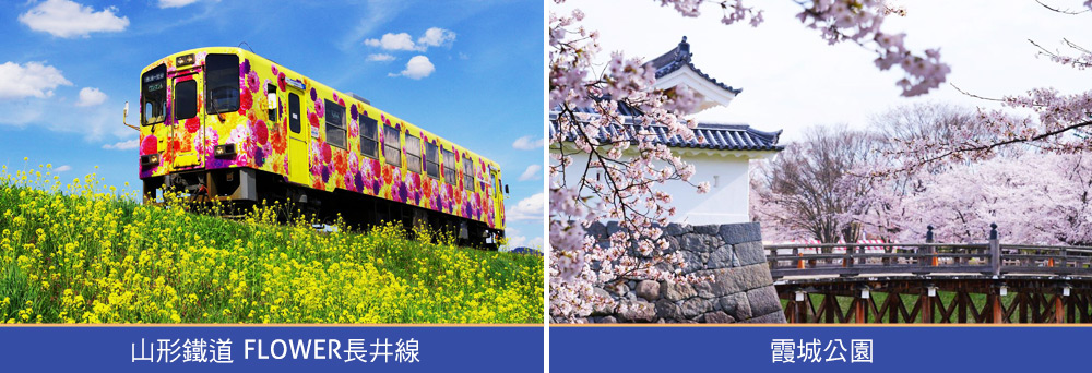 天童溫泉─(山形鐡道)FLOWER長井線─(賞櫻百選)霞城公園─鎌先溫泉