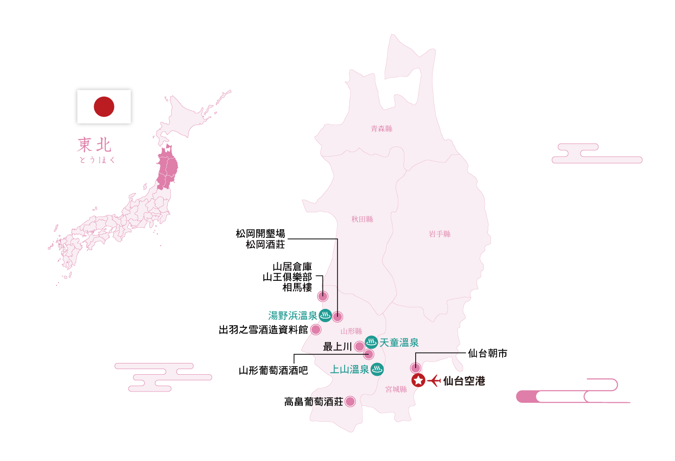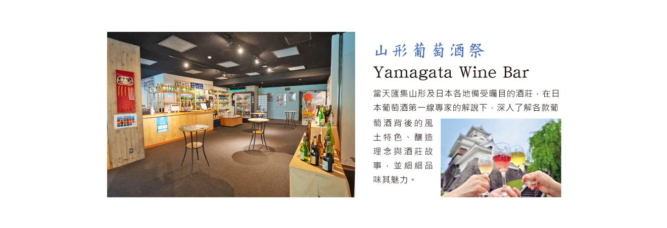 一年一度於山形縣上山市舉辦的日本代表性葡萄酒祭「山形葡萄酒酒吧(Yamagata Wine Bar)」。當天匯集山形及日本各地備受矚目的酒莊,在日本葡萄酒第一線專家的解說下,深入了解各款葡萄酒背後的風土特色、釀造理念與酒莊故事,並細細品味其魅力。這不僅是一場試飲活動,更是一段能理解「為何會是這樣的風味」的高層次品飲體驗。 結合上山市迷人的街景、初夏宜人的氣候,以及使用當地食材的美食搭配,完整展現山形葡萄酒酒吧獨有的魅力。專為希望更深入認識、享受日本葡萄酒的台灣旅客所打造,僅此一天的尊榮限定特別行程,誠摯推薦。
