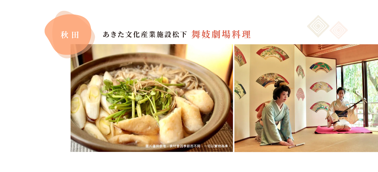 位於秋田縣秋田市的旅遊設施「秋田文化產業設施松下」,是由大正時代創立的「割烹松下」遺跡改建而成。其中的「秋田舞妓劇場」,可以欣賞身著華麗傳統服飾秋田舞妓優美的舞姿,感受大正時代上流人士風雅的生活樂趣。