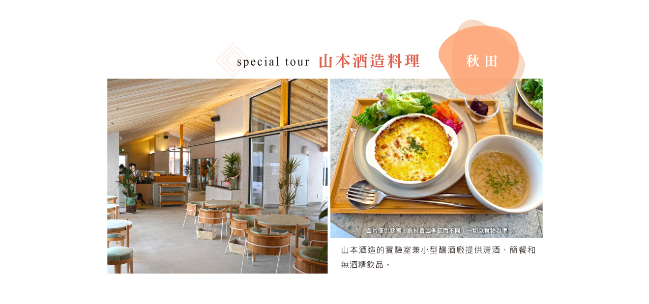 位於秋田縣山本郡八峰町白神地區的山本酒造SPECIAL TOUR,將百年傳承的經典酒廠結合時尚潮流的元素,打造出帶有文青風格的品飲空間,受到喜愛質感生活的旅客青睞,提供自家釀製的清酒、咖啡、輕食以及法國甜點界畢卡索Pierre Hermé所合作的酒粕馬卡龍!