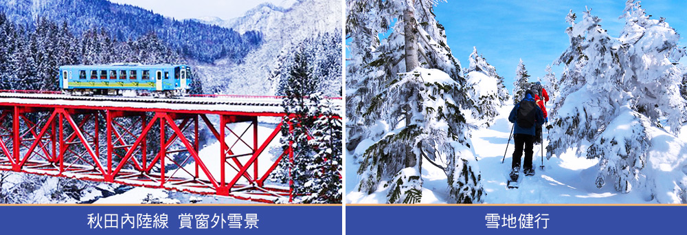 搭乘被譽為日本最漂亮、最原始的風景鐵道「秋田內陸縱貫鐵道」,悠哉的穿行在田野、平原及山區溪谷間,冬季時,從車窗望向秋田的群山,看著雪花飄落,累積,彷彿置身於古代的絕美水墨畫之中,成為難忘的旅行記憶。