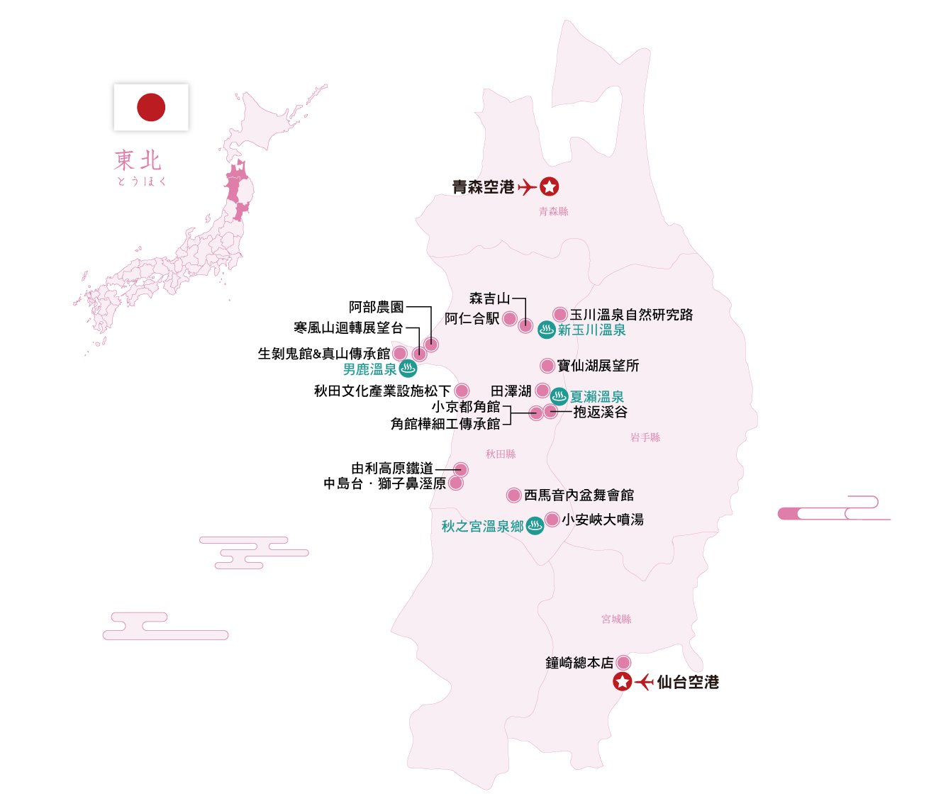 台北(桃園)機場→東北(青森)空港─(秋田)新玉川溫泉