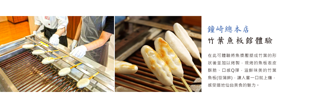 位於宮城縣仙台市的鐘崎總本店竹葉魚板館(笹かまぼこ),秉持著「美味與樂趣」的理念,打造出「獨家的味道」、「獨家的體驗」、「獨家的邂逅」宮城美食與文化的主題館。