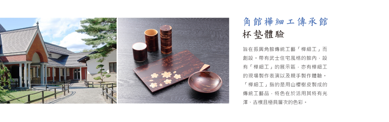 位於秋田縣仙北市的角館樺細工傳承館,旨在振興角館傳統工藝「樺細工」而創設。帶有武士住宅風格的館內,設有「樺細工」的展示區,亦有樺細工的現場製作表演以及親手製作體驗。「樺細工」指的是用山櫻樹皮製成的傳統工藝品,特色在於活用其特有光澤、古樸且極具層次的色彩。