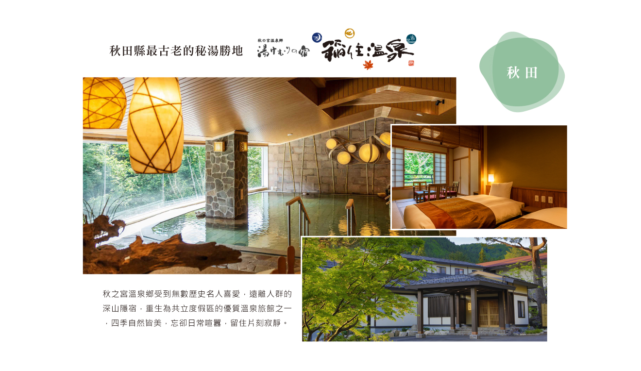 極具療癒的東北秋田,自然與文化相互交融,創造出令人嘆為觀止的獨特體驗。無論是追尋寧靜的山野,品味美味的當地料理,還是沉浸在豐富的歷史傳統中,上順引領您進入這個自然文化寶庫,探訪秋田精彩之處。